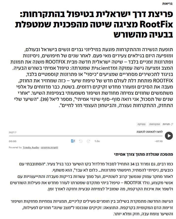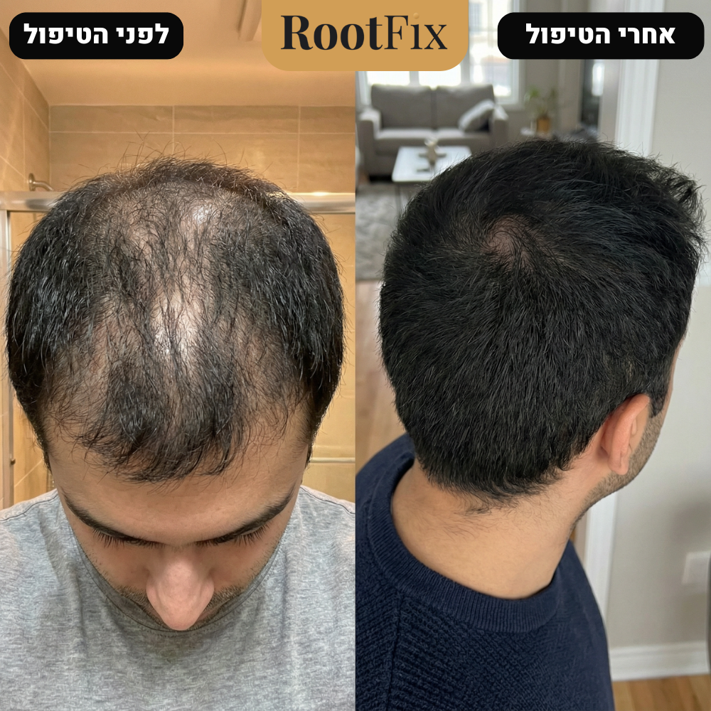 RootFix מגיע בדיוק לשכבה שבה הזקיקים נמצאים, מגביר זרימת דם, מפחית דלקתיות ומעורר פעילות מחודשת. גם אזורים שנראו אבודים מגיבים היטב כל עוד הזקיק לא הושמד לחלוטין, וזה נדיר.