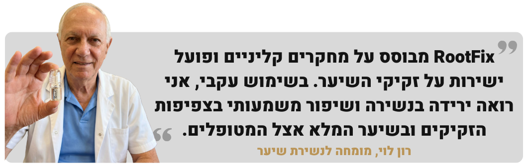 RootFix עובד אחרת לגמרי. האמפולה יוצרת מיקרו פתחים שמאפשרים לסרום להגיע לעומק שבו הזקיקים מגיבים באמת.