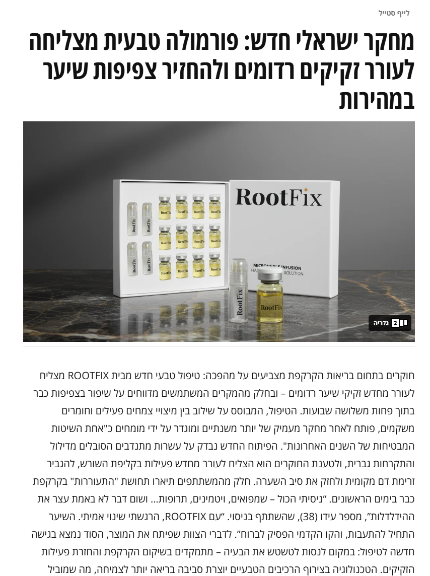במהלך השימוש RootFix מוריד את רמות ה־DHT, משפר את זרימת הדם ומחזק את הזקיקים.