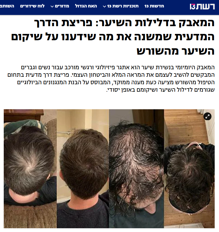 הטכנולוגיה נבדקה קלינית והוכחה כיעילה לשיפור צפיפות ומלאות השיער כבר בחודשים הראשונים.