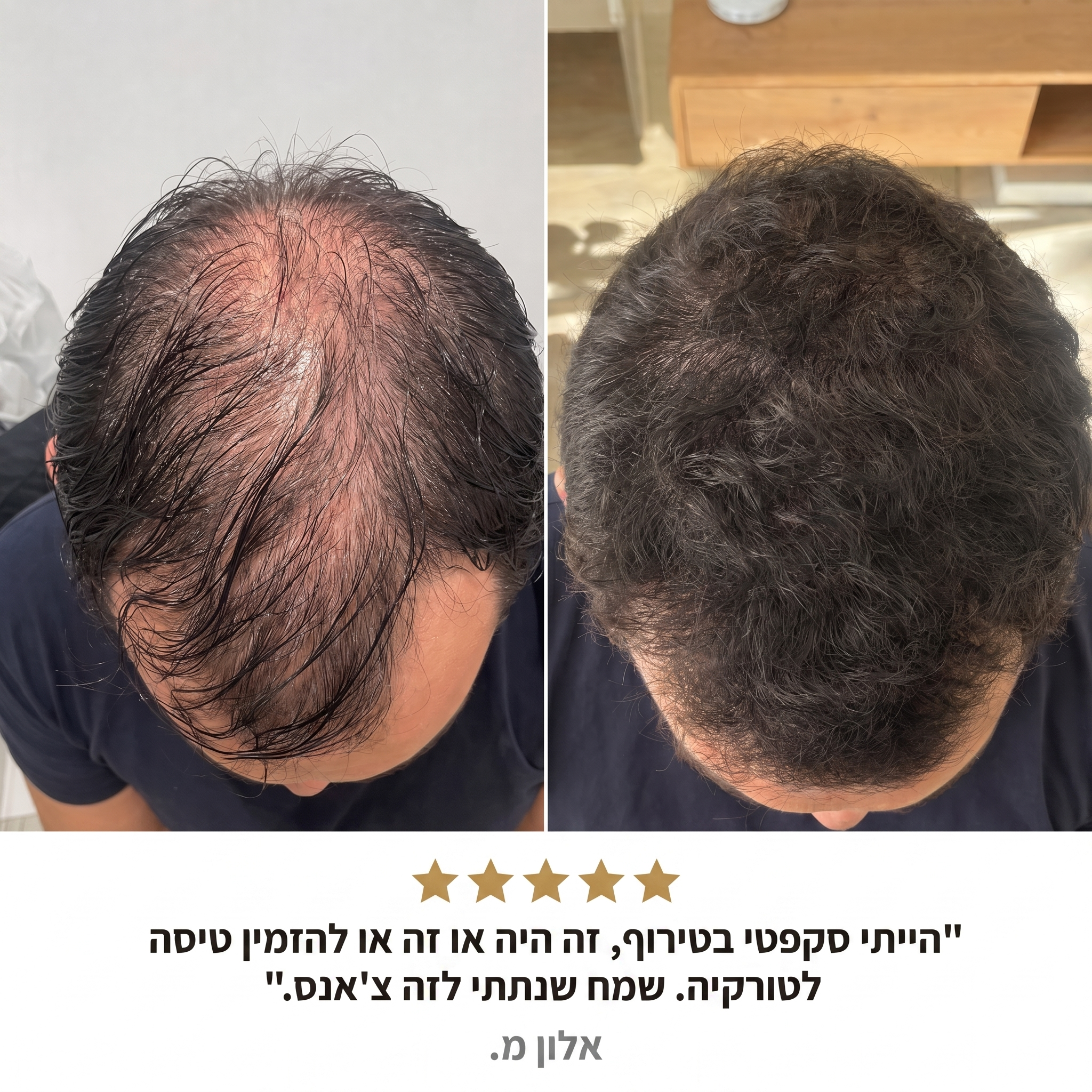 השילוב בין החדרה עמוקה, חסימת DHT וחיזוק זקיקים מביא ליעילות גבוהה בצמיחה מחדש.