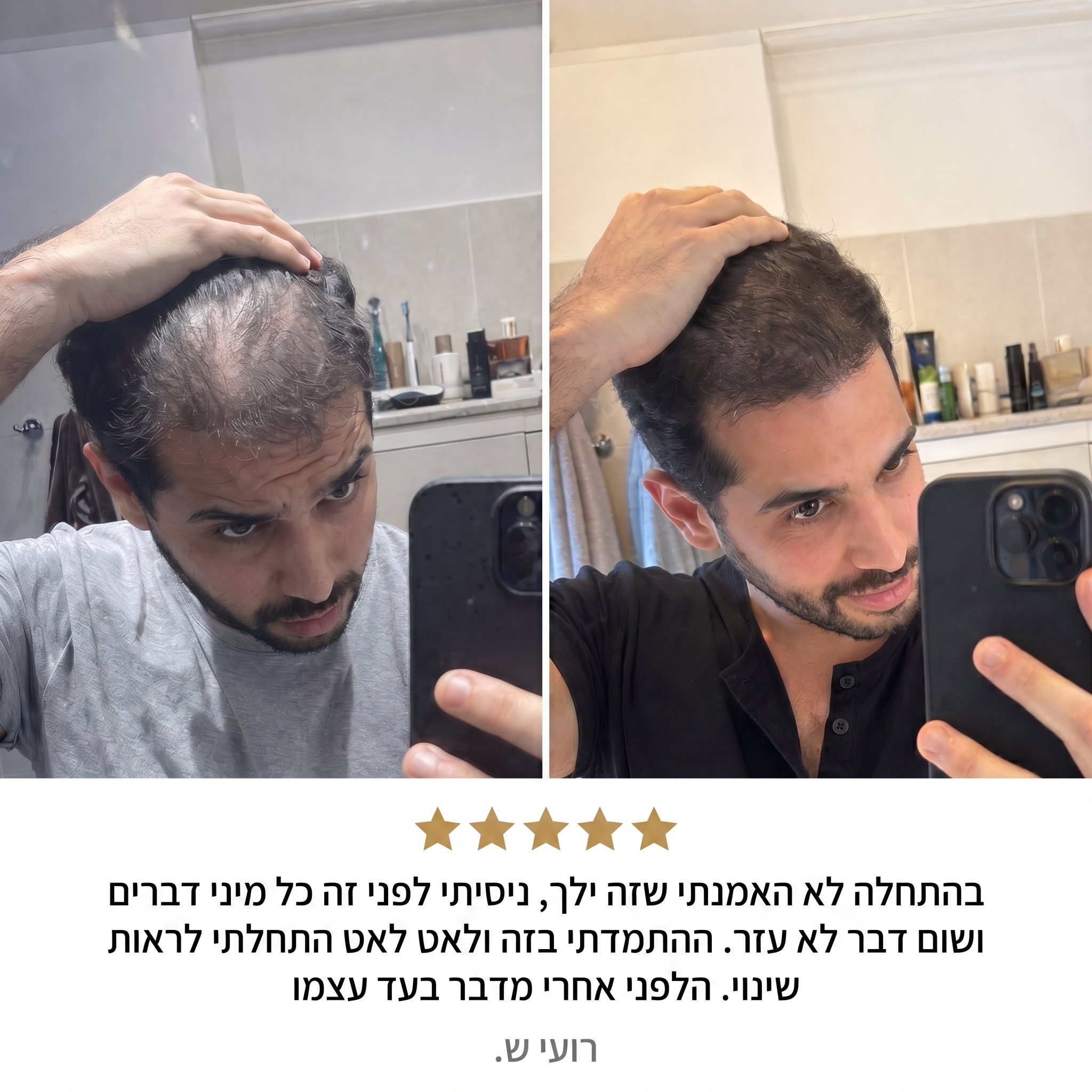 שם החומרים משפרים את זרימת הדם, מאזנים את הקרקפת, מפחיתים דלקתיות, מעוררים זקיקים רדומים ומקטינים השפעת DHT. זו הסיבה שהוא מצליח גם כששום דבר אחר לא עבד.
